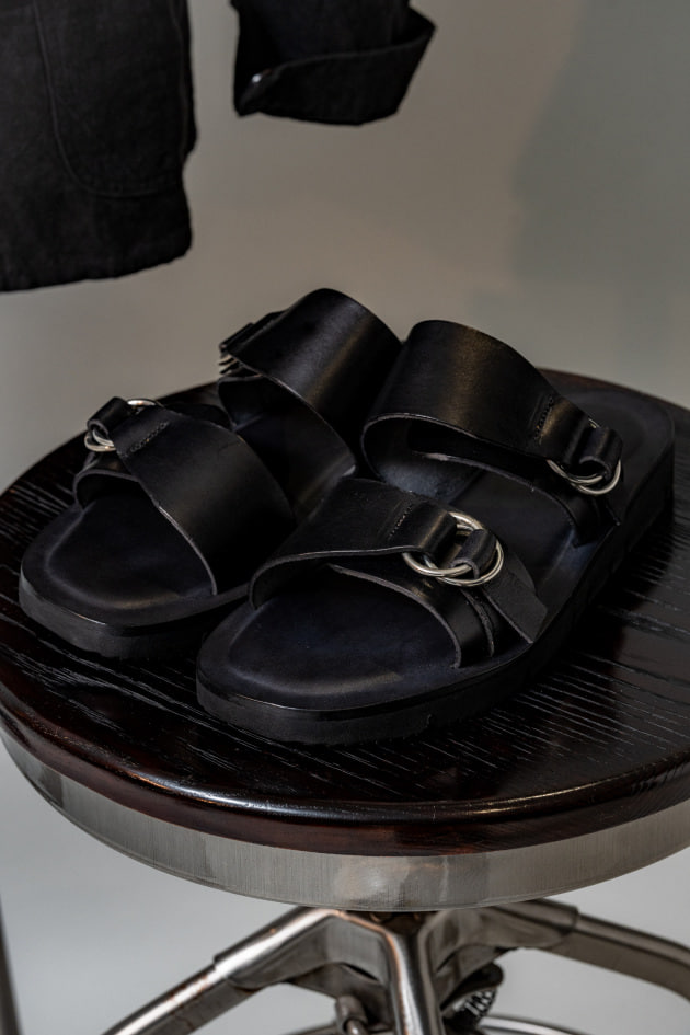 <Oita(オーイタ)>は、オリジナルのベルクロストラップ仕様を踏襲しつつ、編み込みストラップを組み合わせたハイブリッドデザインへアップグレード。アッパーには光沢感のある Amalfi レザーを使用し、バックルも定番を進化させた光沢のあるモールドバックルに置き換えることで、よりモダンでラグジュアリーな印象に仕上げています。