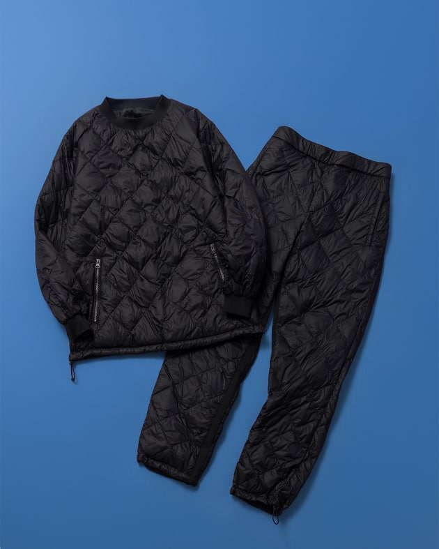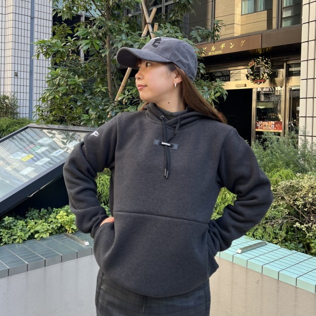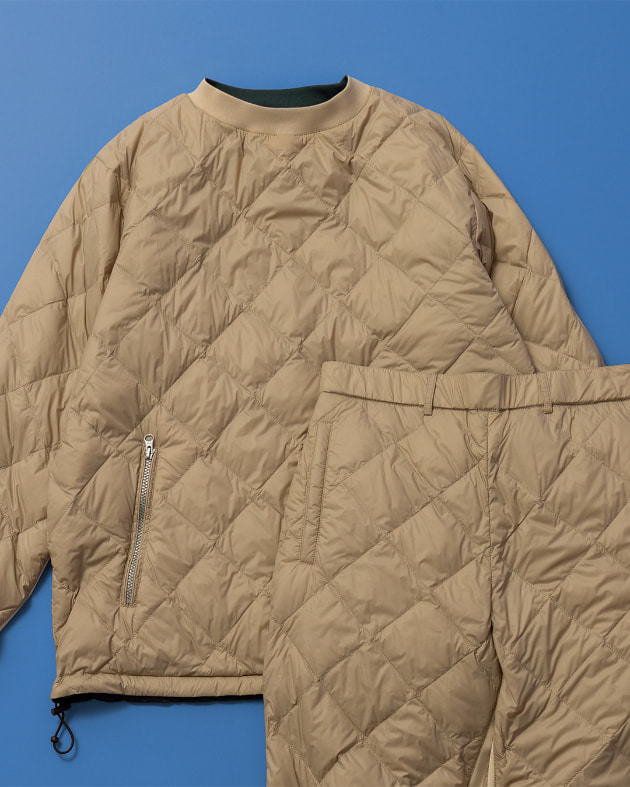先ほどご紹介したトップスよりも厚みのあるダブルジャガード編地で、こちらも防風裏地付き。もはやアウター感覚で着用いただけるトップスです。