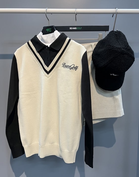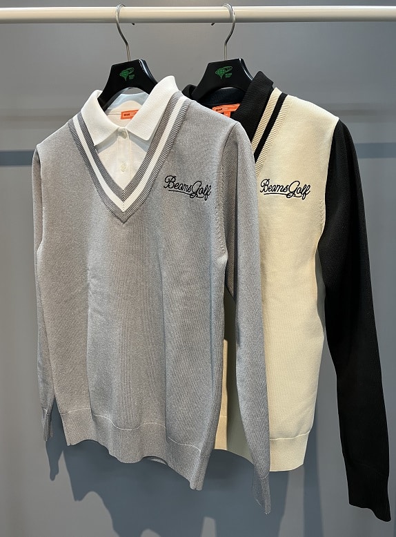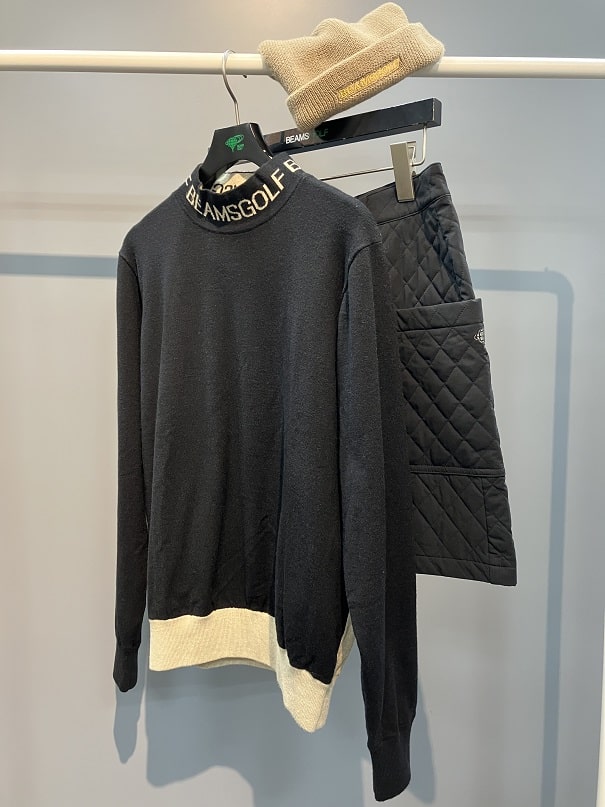 BEAMS GOLF エアシャット 縦ロゴ ニット(防風)