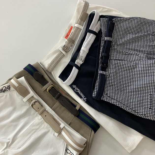 ウエストの調整や、腰回りにボールポーチや距離計を装着する方にも、ベルトがあるとかなり腰回りが安定します!BEAMS GOLFでは、普段使いも出来るシンプルなデザインのベルトを展開しておりますので、是非店頭でもお試しいただければ幸いです(^^)/