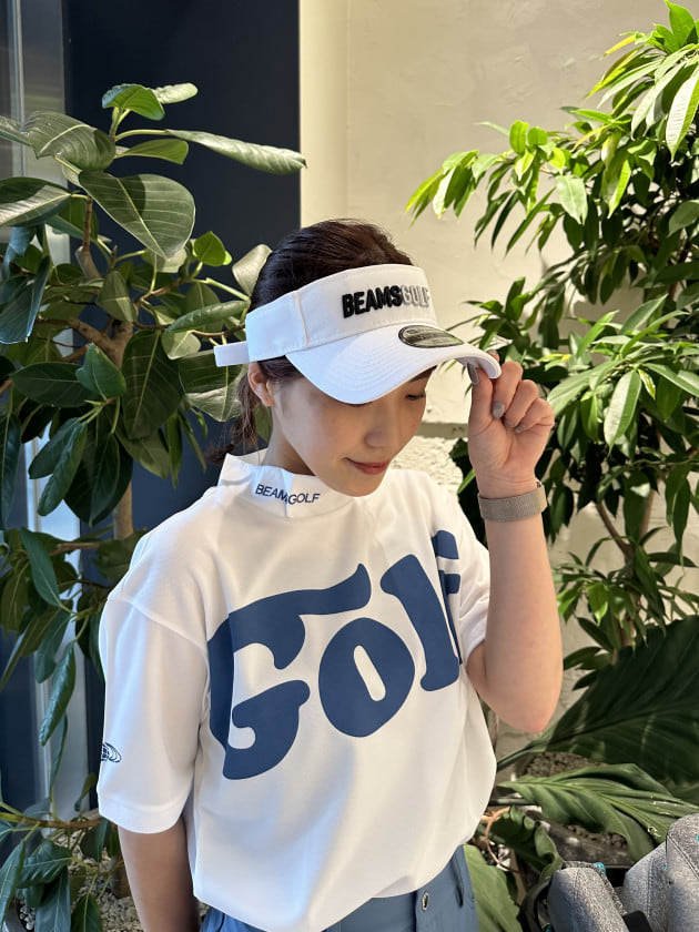 ベーシックなコットン素材の別注サンバイザーはスタイリッシュな印象の"BEAMS GOLF"ロゴをフロントに刺繍。