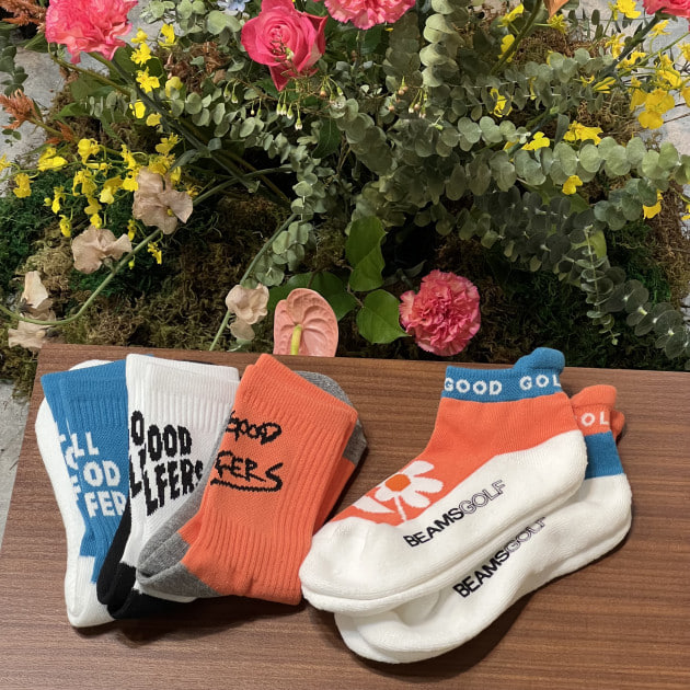 帽子には〈BEAMS GOLF〉の地球ロゴがプリントされてるのもポイント。