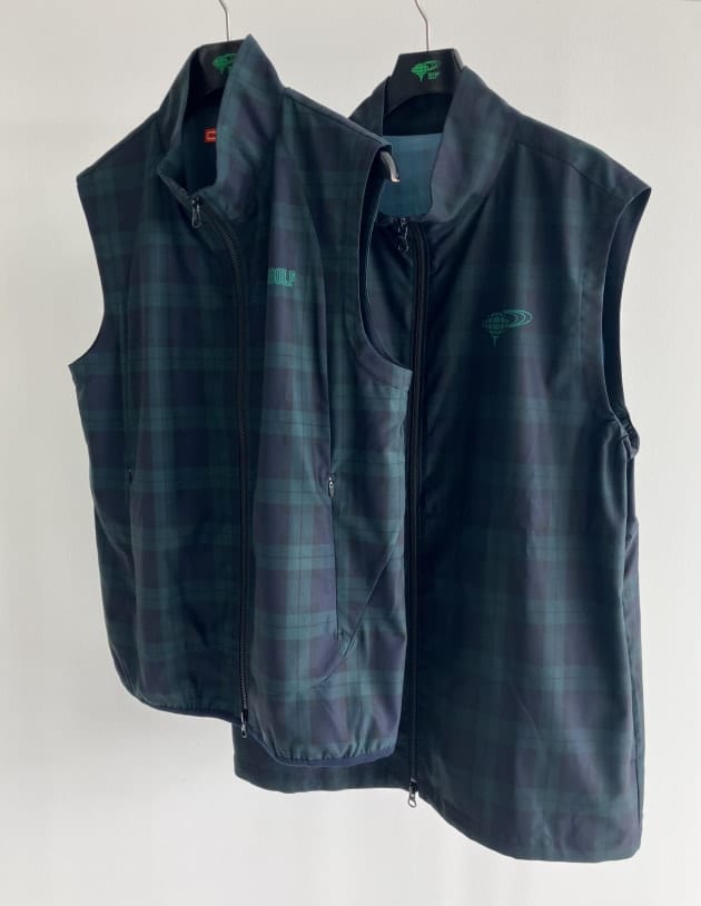 まずは、朝方の肌寒い時に便利なストレッチタフタ素材のベストから。