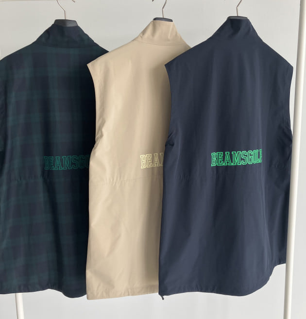 メンズはバックスタイルにBEAMS GOLFのプリントが。