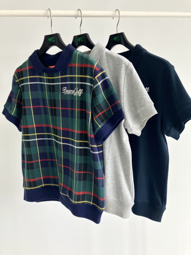 BEAMS GOLF 襟付き チェック 半袖プルオーバー