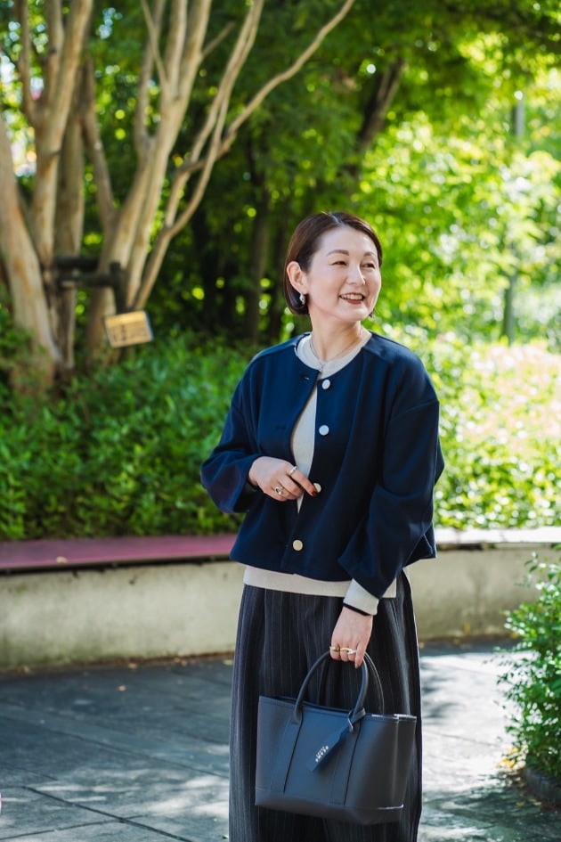 《上品ネイビーで魅せる!通勤にもおすすめの秋スタイル》