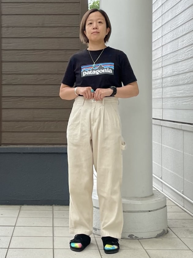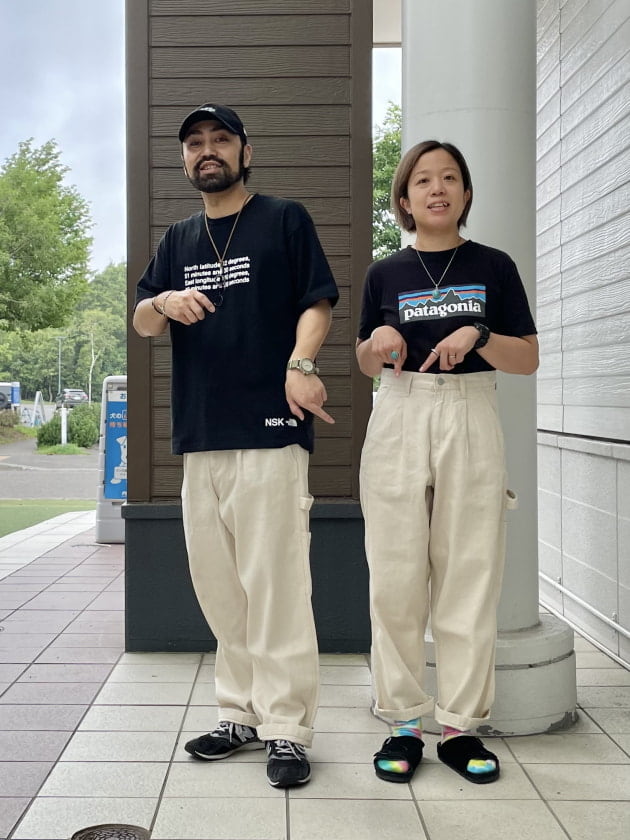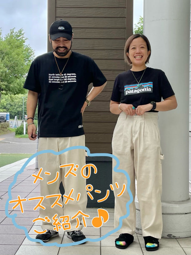 スタッフ植田のようにTシャツを今っぽくインして履いていただいてもおしゃれに決まる上、パンツ全体の表情もわかりやすくなりオススメです!