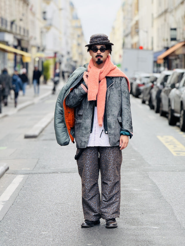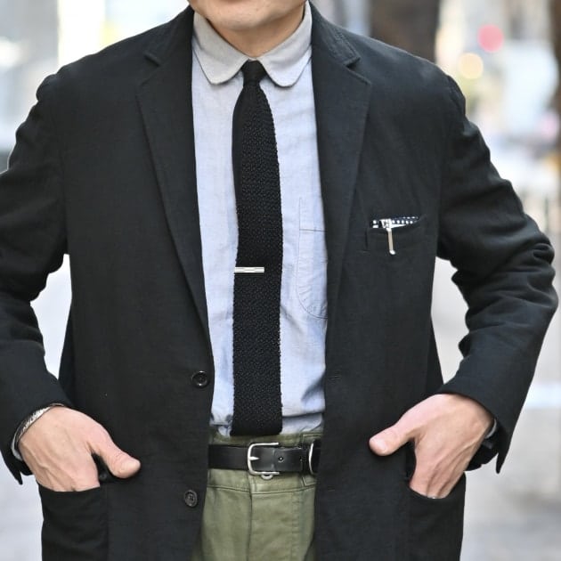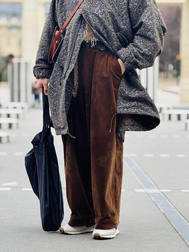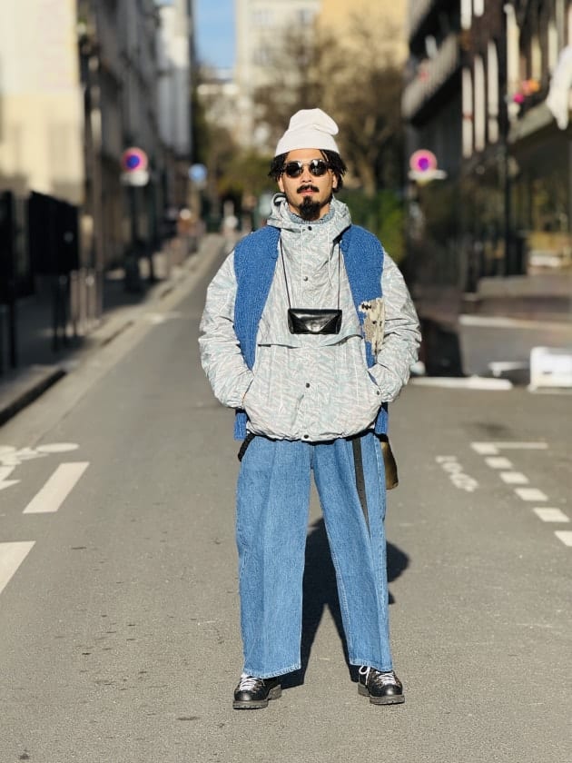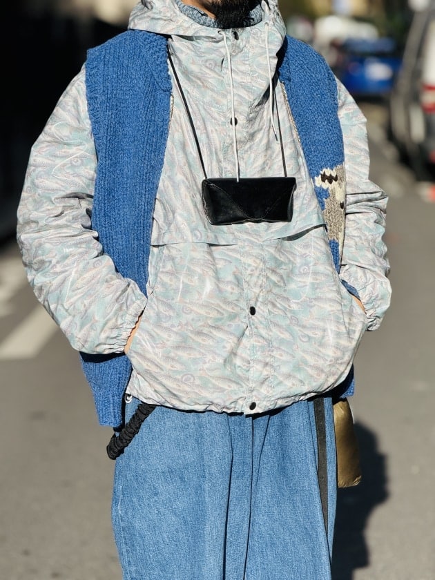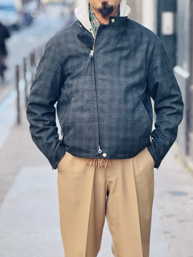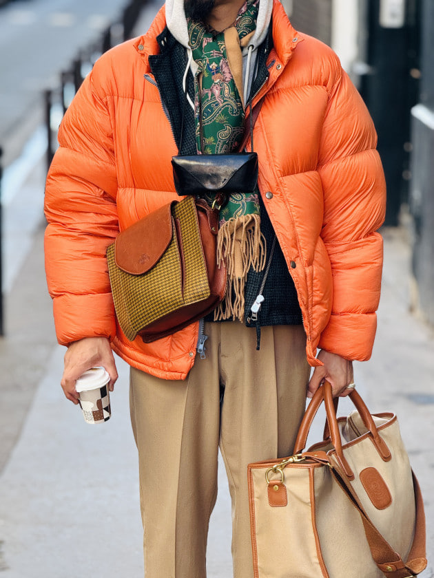 丈感・素材感バラバラのレイヤード、これも好み。