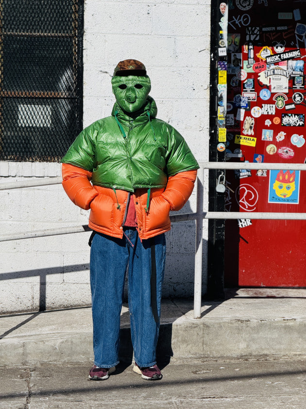 サミュエル金子が流行らしたダウンアイテムの2トーン仕様を取り入れさせてもらい・・・派手な組み合わせを。