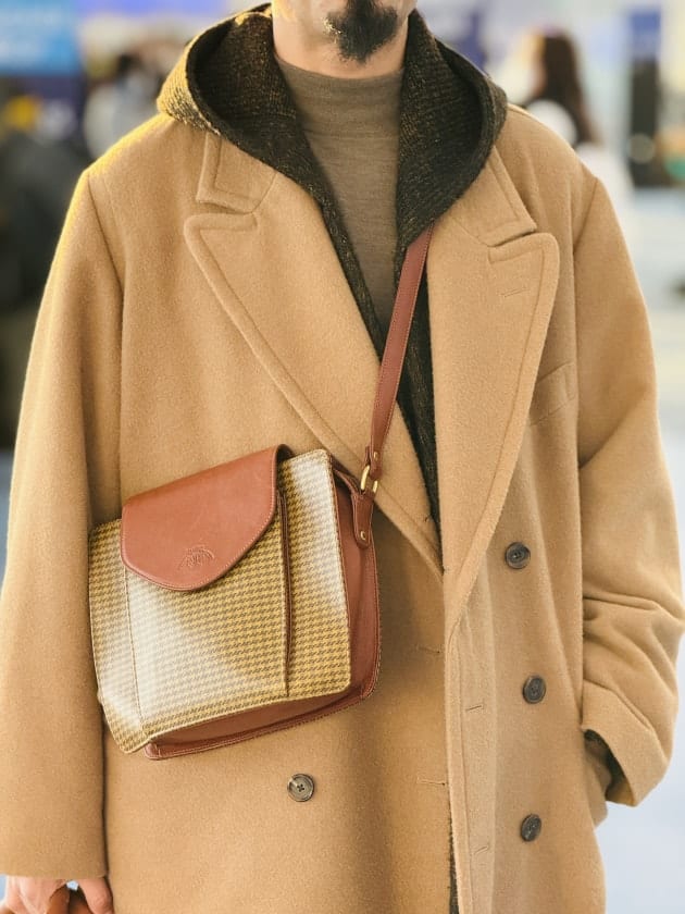一見、派手に見えるコートではあるものの・・・着用すると色馴染みがとてもしやすい一着。