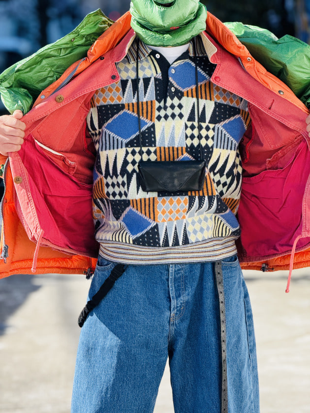 サミュエル金子監修のEXPEDITION CLUBのダウンケープを挟み、インナー込で6レイヤード。