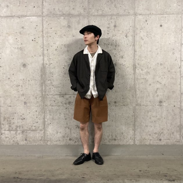 トップスは、ショーツと同系色のジャケットをセレクト。