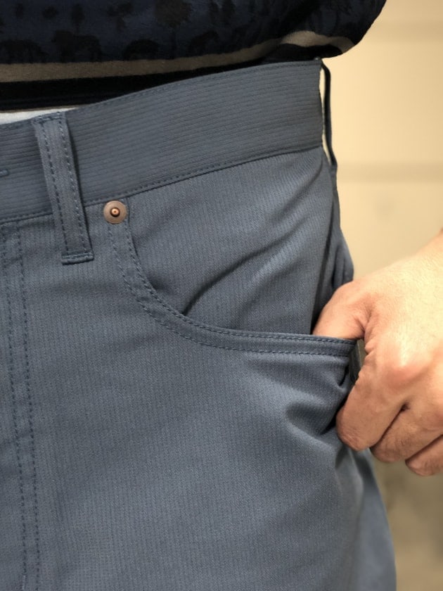 ポリエステル組織なので、変進開花は見られないもののこのアイテムの良さは先述した柔さ、軽さ、穿き心地はもちろん速乾性も挙げられますね。