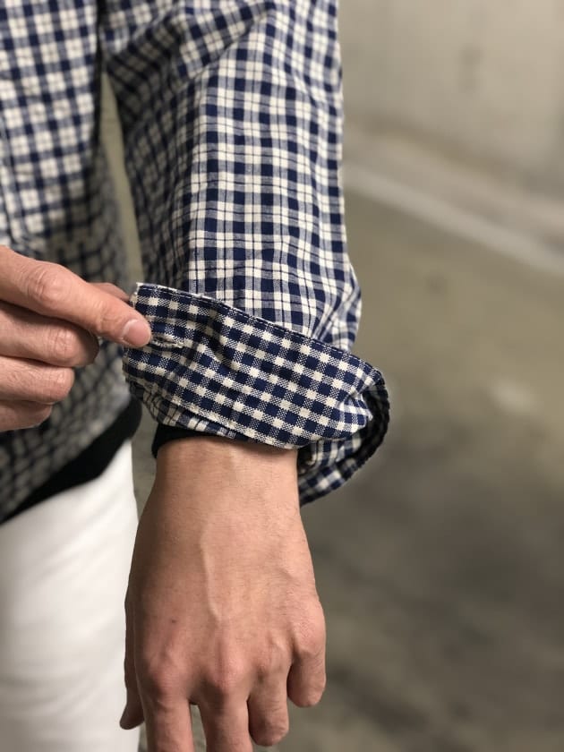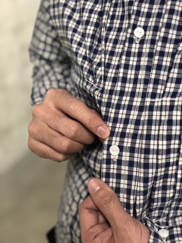 ボタンはチェンジボタン、袖口はアジャスターボタンなども付かず、シンプルな印象です。