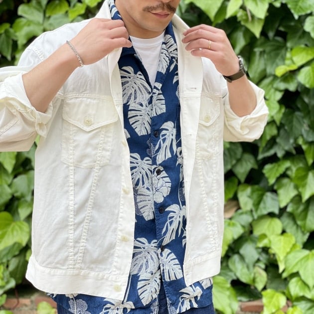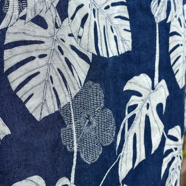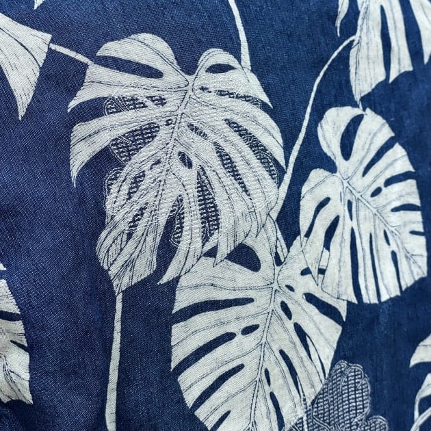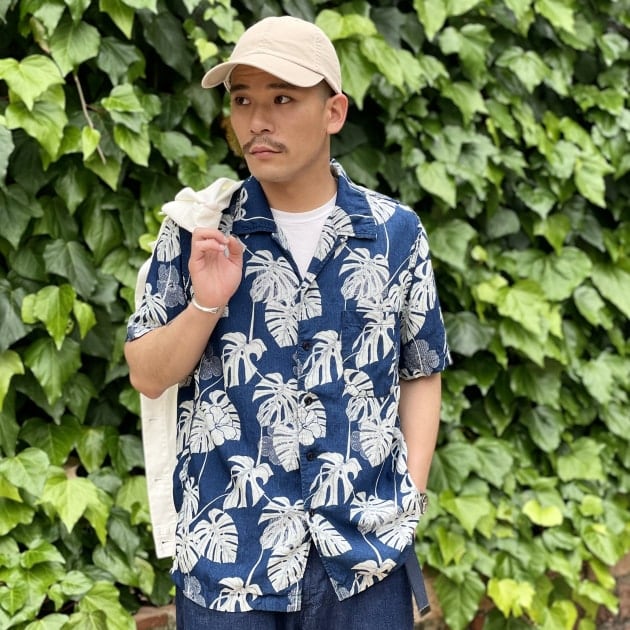 インディゴ×カットジャカード×抜染プリントのアロハシャツ。