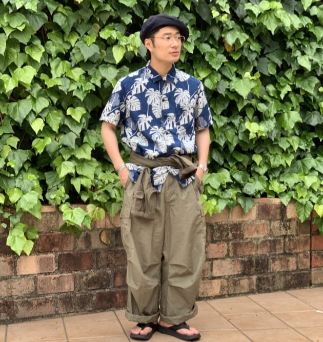 アロハシャツ×ミリタリーショーツでアクティブなこなしに。