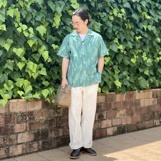 アロハシャツ×ドレストラウザーズは個人的にも大好きな組み合わせで、まさに夏の大人な正装スタイル。