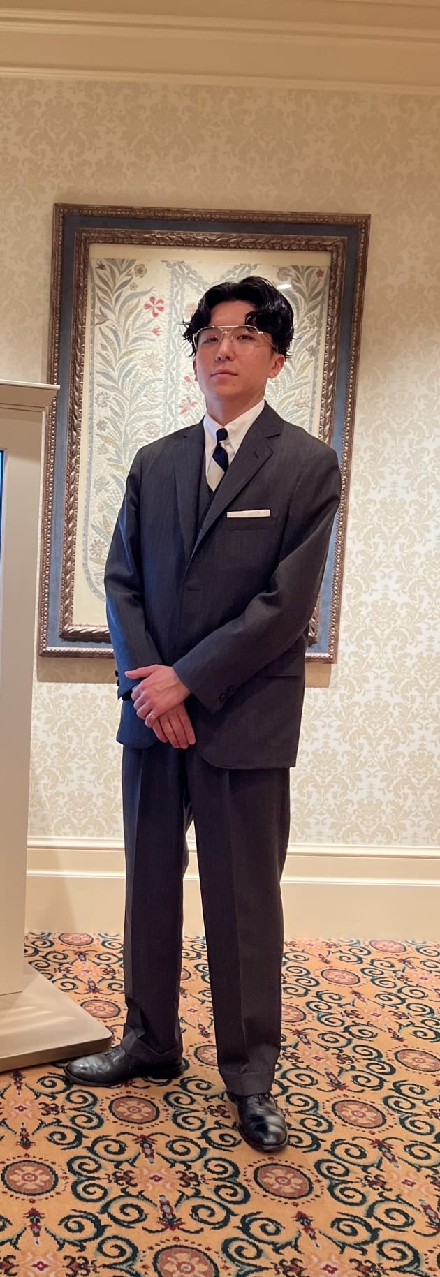 グレーは重厚感のある生地 コーデュロイやツイード生地のジャケットのインナーに合わせたいかなと、この3色の中では1番渋い・大人っぽい雰囲気を感じるのでよりクラシックにダンディな合わせ方をしたいかなと。