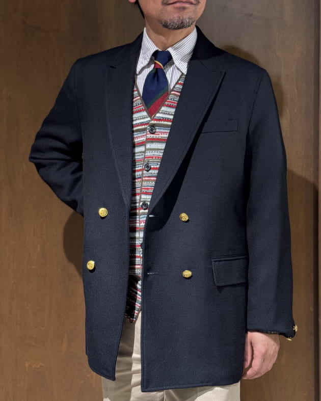 今日の私たちのIVY PREPPY STYLEには欠かせない秋冬シーズンワードローブのひとつであり、そのクラシックな表情はやはりタイドアップスタイルでジャケットの中に合わせたくなります。