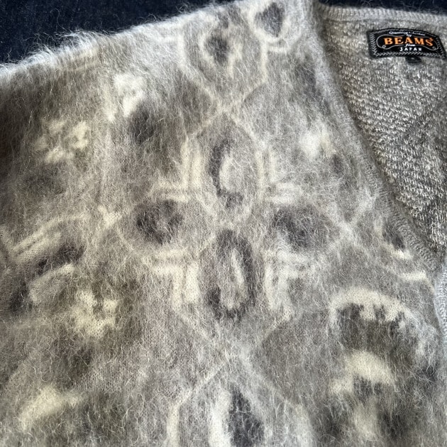 立体的な織柄とその組み合わせから、当時の衣料に置いても、大衆には届かない何とも拘りのある優雅なムードすら感じてしまう。プリントではない事がそう感じさせるのでしょう。手の込んだオリジナリティは唯一無二である。