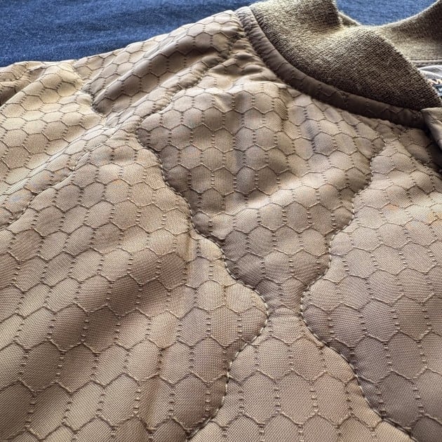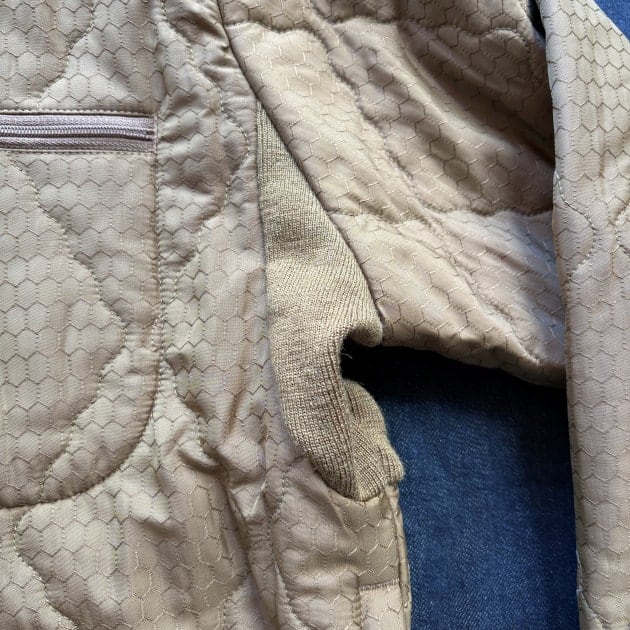 綿が搭載されており、主にライナージャケットとして使用されていたのでしょうか。生地のデザイン以外は、極力ミニマムに仕上げられている事から想像する。