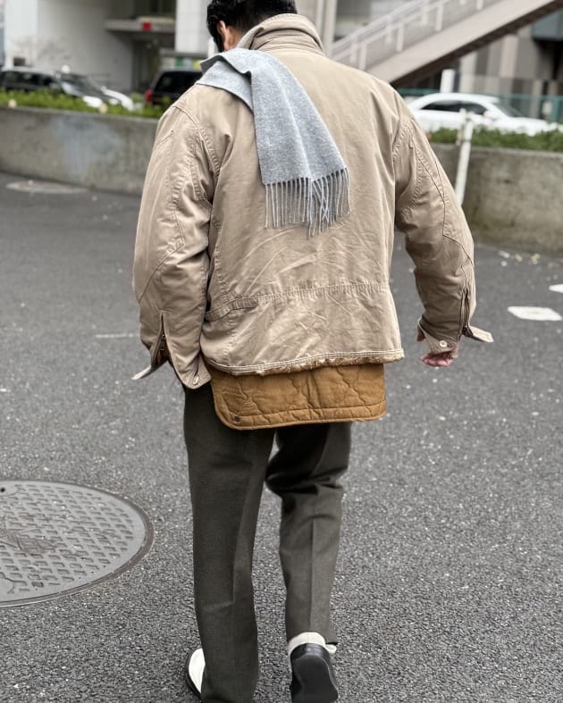 このアクセントがあるかないかで、見え方は大きく変わってくるだろうか。矛盾するかもしれませんが、用途がライナージャケットだけだとするとzipは必要が無い。寧ろポケットすらいらない。