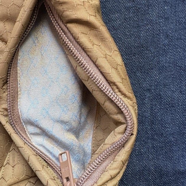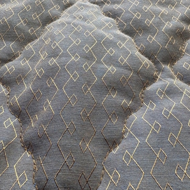 保温性や着心地を考慮して作られるハズのその裏地は、耐久性と滑りを兼ね備えたであろうコットンポリエステル混紡生地。しかも表生地とは違うデザインのジャカードに織られており、そんな必要性があったのか、贅沢の極み。しかも玉虫調とくれば、スポーツウェアが瞬く間に品のある高級品に見えてくる。表の生地としても使用出来るであろう。