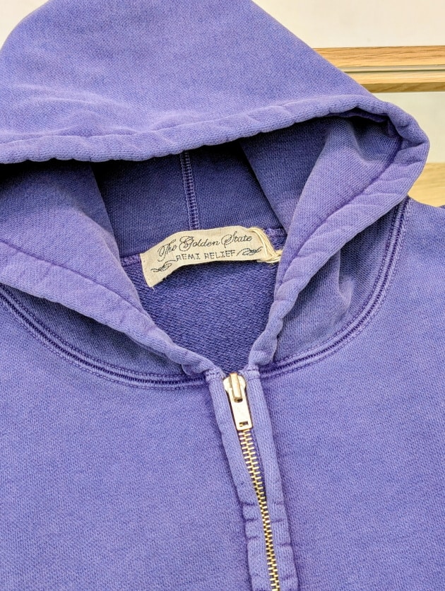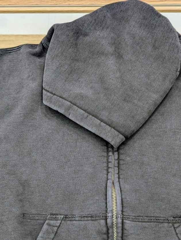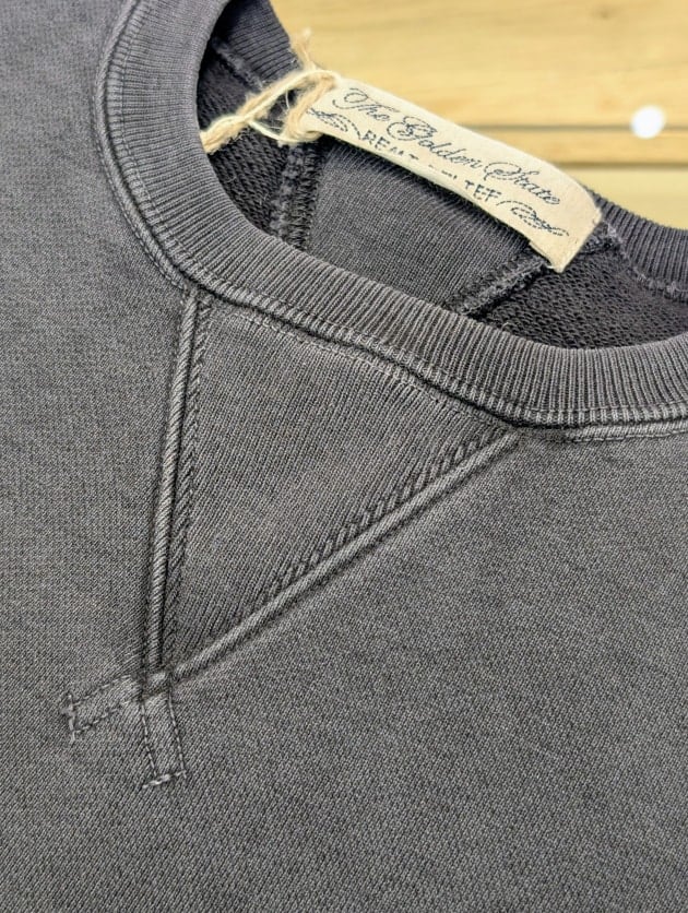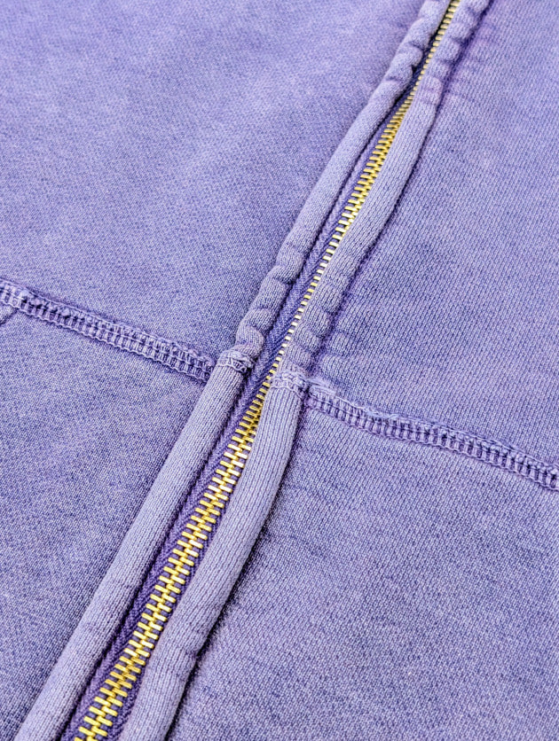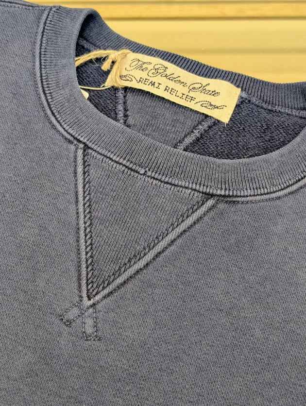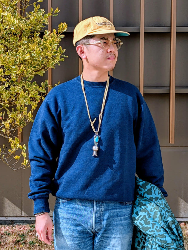 Indigo Fabric特有の表情感、そして着続けることで起こる色落ちは、まさにデニムのように着て育てることのできるスウェットです。