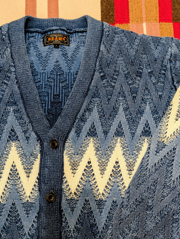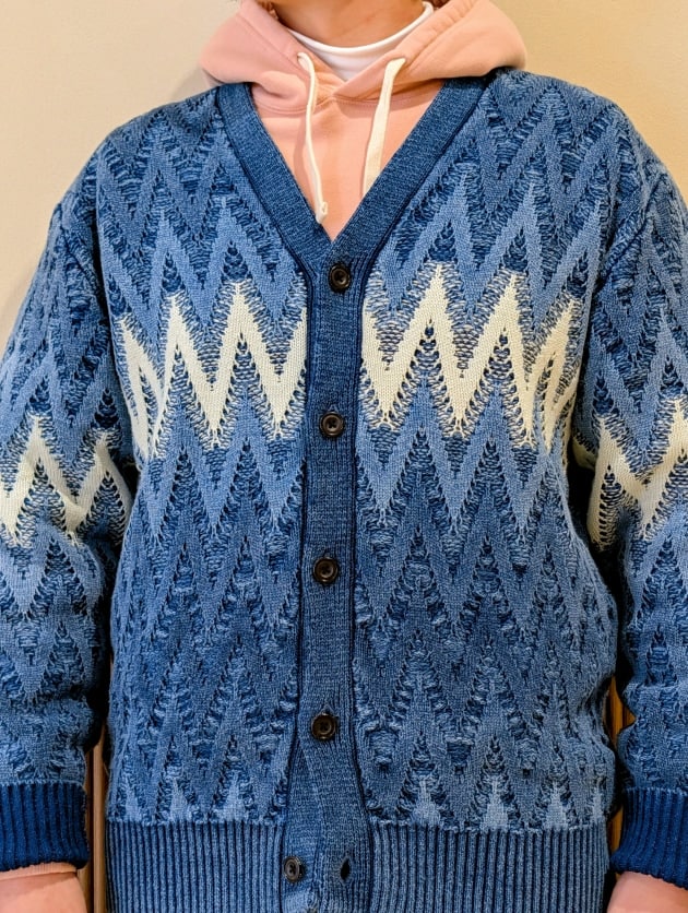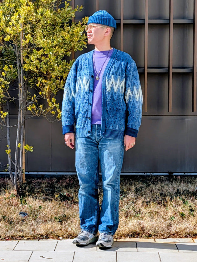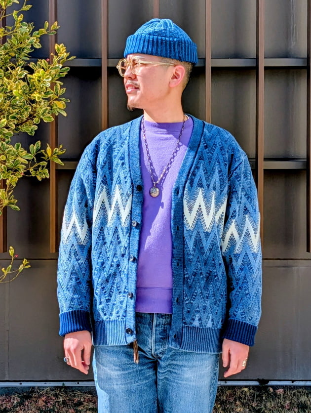 製品状態でのIndigo染めではなく、編み上げる前の"糸の段階"で染めを施しているため、色ムラの少ない深いIndigoを楽しんでいただけます。