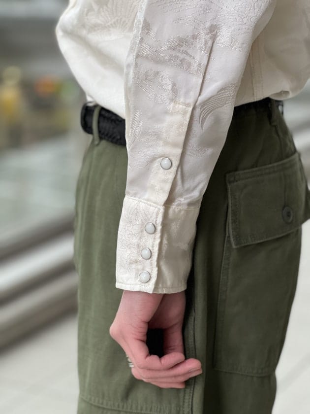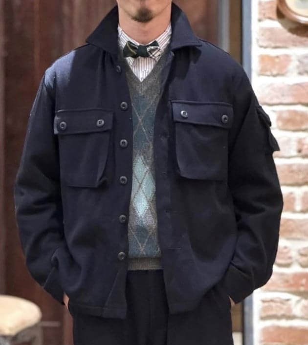 個人的に襟付きも良いですが、スタンドカラーのボタンを全部閉めて、ジャケットを羽織った際の首回りの収まりがお気に入り。