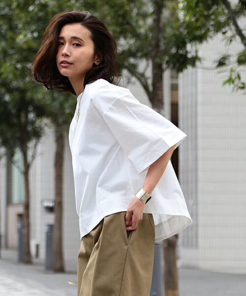 爽やかにコットンパンツと合わせてコーディネートするのもオススメです!