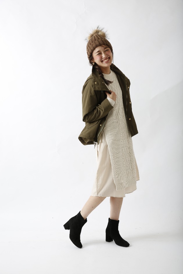 ちょっとかわいらしく、ニットワンピースを合わせても、確実にきまります!