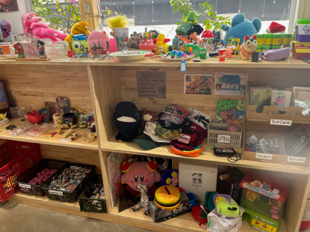 1階の雑貨、小物は現地のアーティストモノまで揃います。