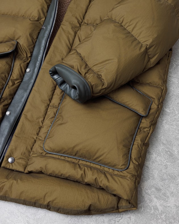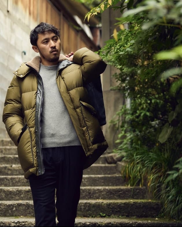 私もリブパンツは履いたことが無かったのですが、このような感じでスポーティーな雰囲気に見せるときには良さそうですね。パンツの素材がウールだという事で、スポーティーな中にも大人っぽさが感じられます。