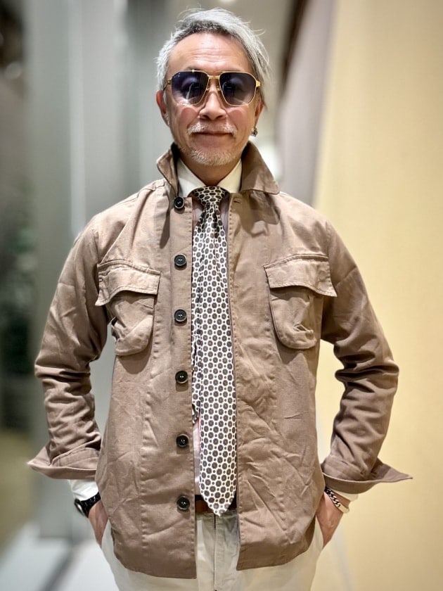 ビンテージモチーフのプリントネクタイは英国で100年以上前に創業し2000年にイタリアのマンテログループの一員となった<HOLLIDAY&BROWN>のものです。英国で長年プリントネクタイを作ってきた実績とイタリアのネクタイメーカーの柔らかな雰囲気が融合しとても素晴らしいネクタイを作っているメーカーです。大柄の小紋柄は<HILLIDAY&BROWN>の代表的な柄として英国でもとても人気の高いネクタイブランドでした。