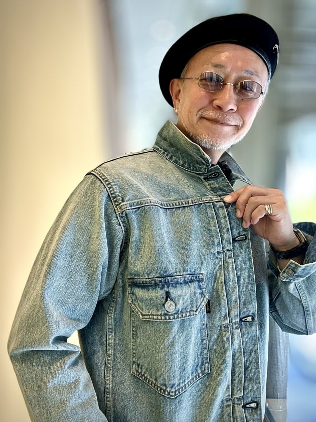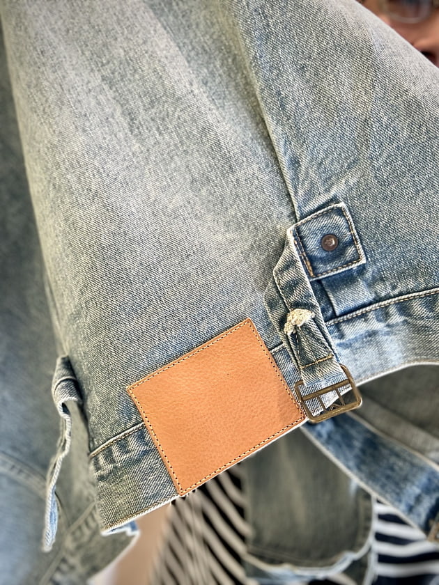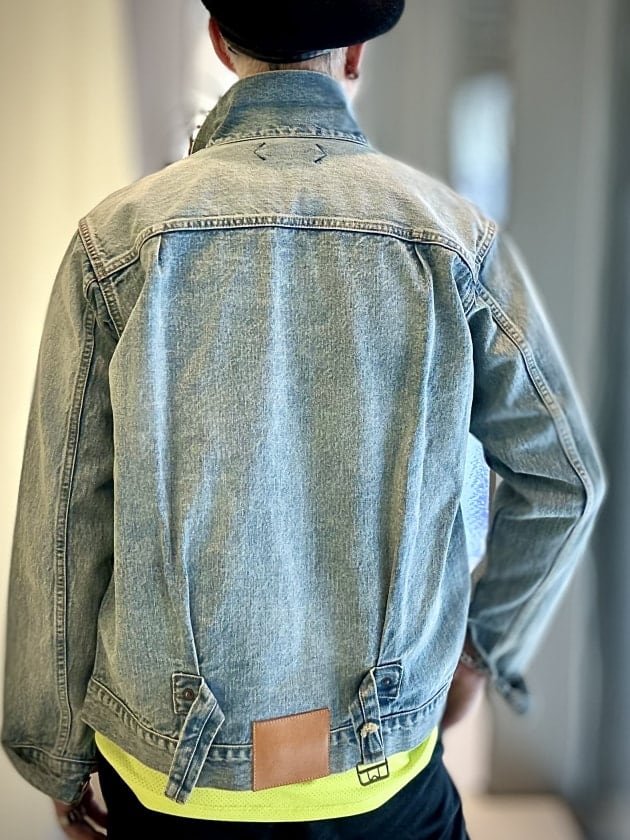 「そしてデザインですが、オリジナルに倣いながらもほどよい主張に収め、あくまで大人が綺麗に着られるデニムジャケットというバランス感でお作りしています。小さすぎて着づらいアームホールや短すぎる着丈を、オリジナルから逸脱しないレベルで洗練させたものにリファイン。後ろ中心にはTバックに見立てた耳使いの本縫い割仕様、ボタンは全て鉄製、リベットは銅製です。半世紀後でも古さを感じさせない普遍的なバランスで仕上げました」