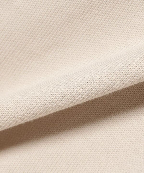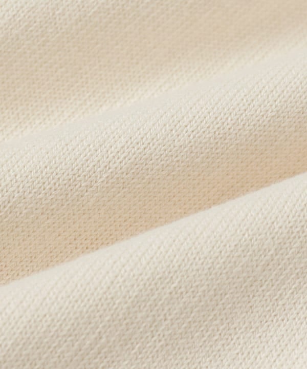 ニットの糸は世界最高級ウールの1つと言われているスーパージーロンラムズウールです。この糸はオーストラリアに生息するメリノ種の6か月程度の子羊の初めて刈り取られた原毛から作られていて、通常のジーロンラムズウールより高品質のため「スーパー」という冠が付いています。糸が非常に柔らかく滑らかなためふんわりとして軽い着用感です。