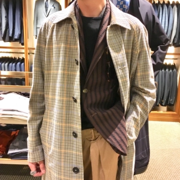 新型のバルカラーコートです。モデル名「SALOMON」。ややオーバーなサイジングがモダンな雰囲気の一着です。