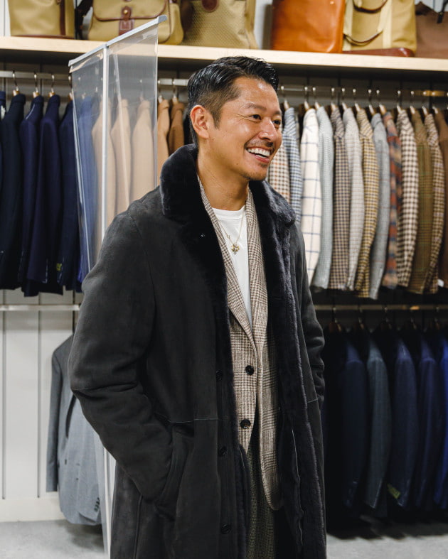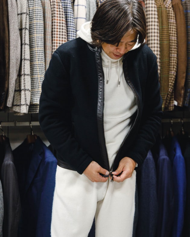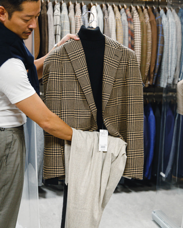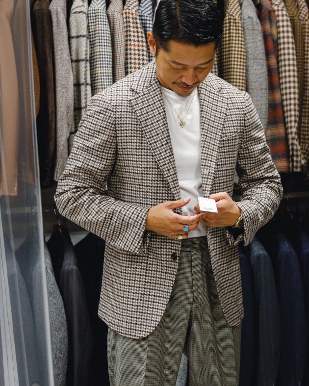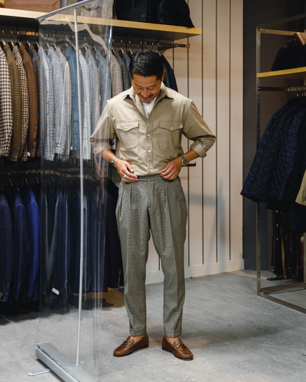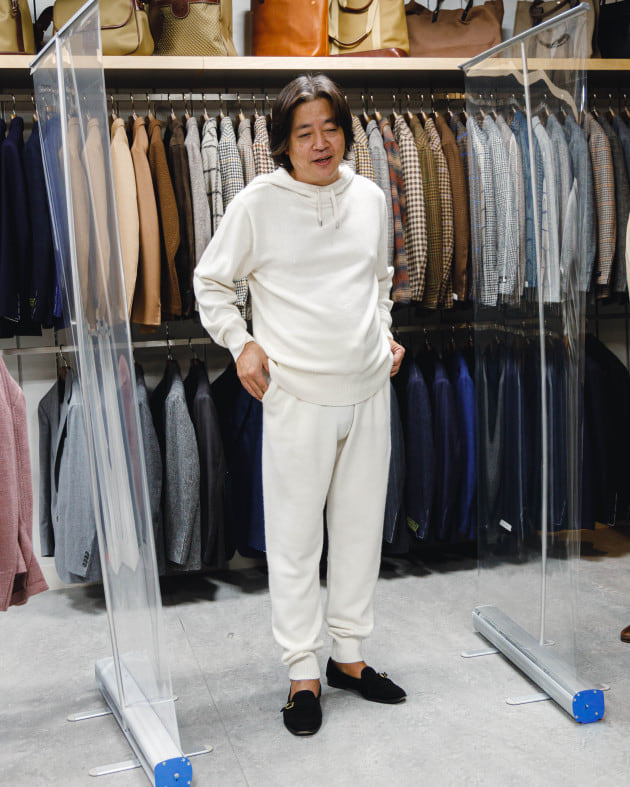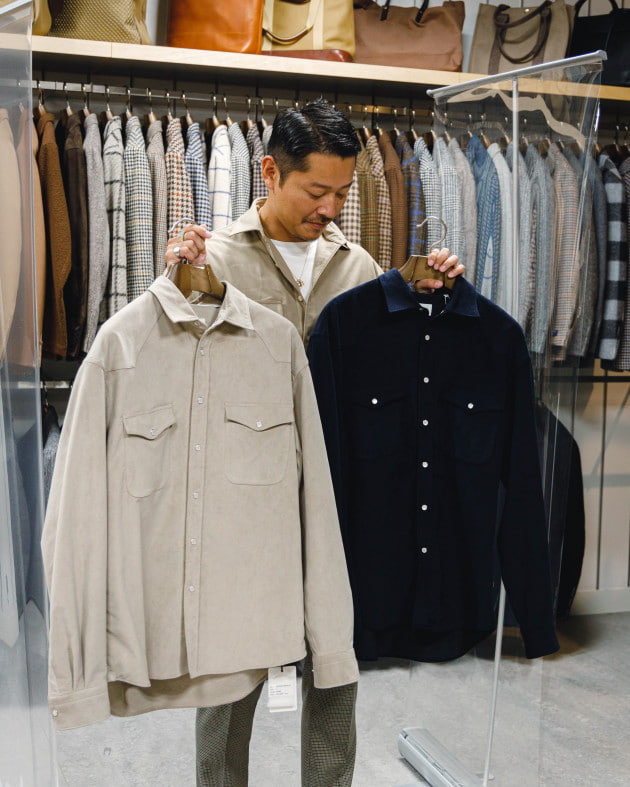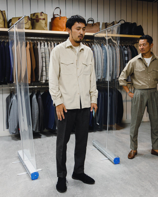 <Brilla per il gusto>では2025年秋冬から展開をスタートしましたが、すでに人気ブランドとして定着し、スタッフからの支持も非常に高いレーベルです。トモさんも愛用しています。今季も見逃せないという顔つきですね。