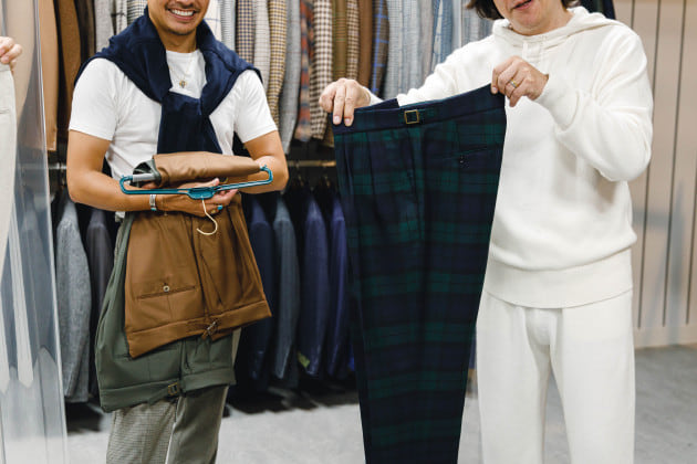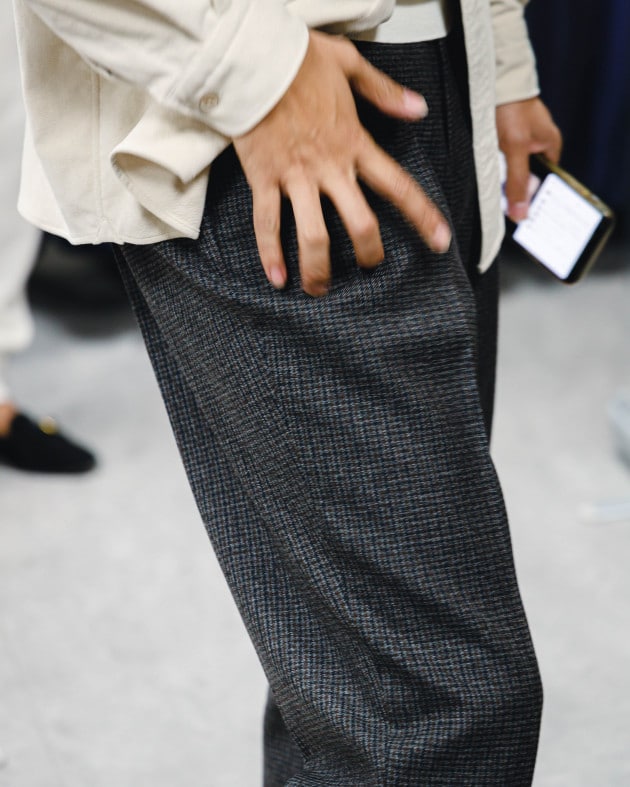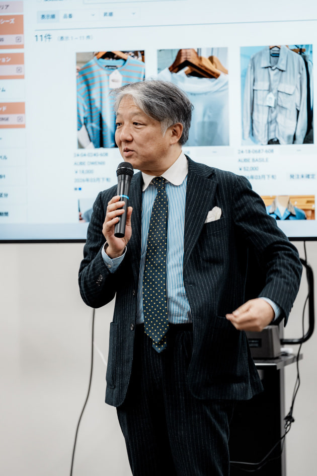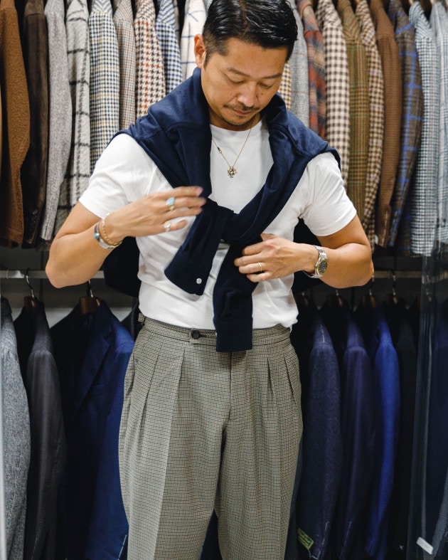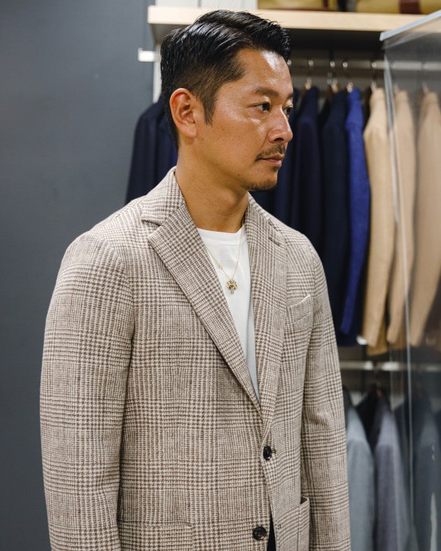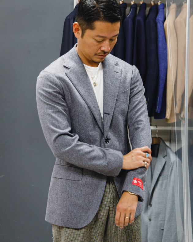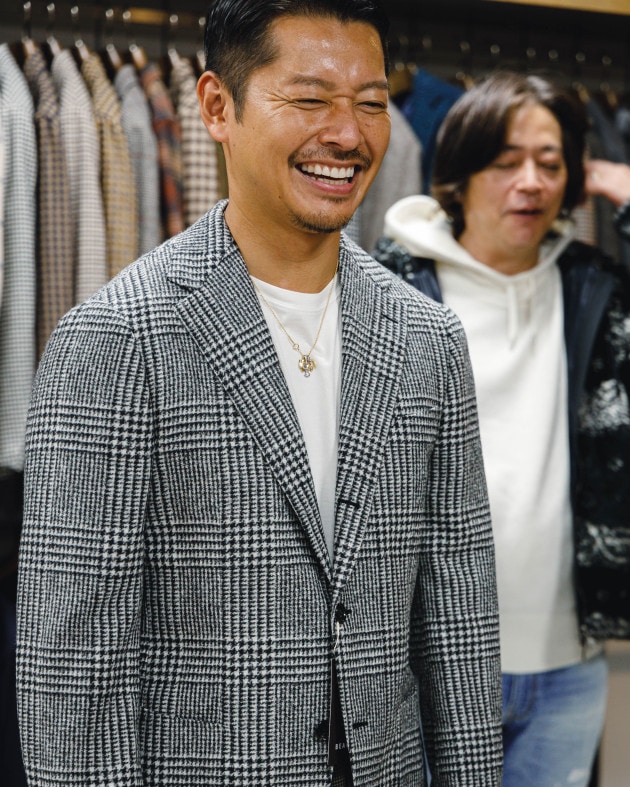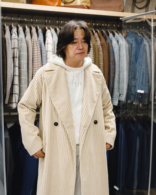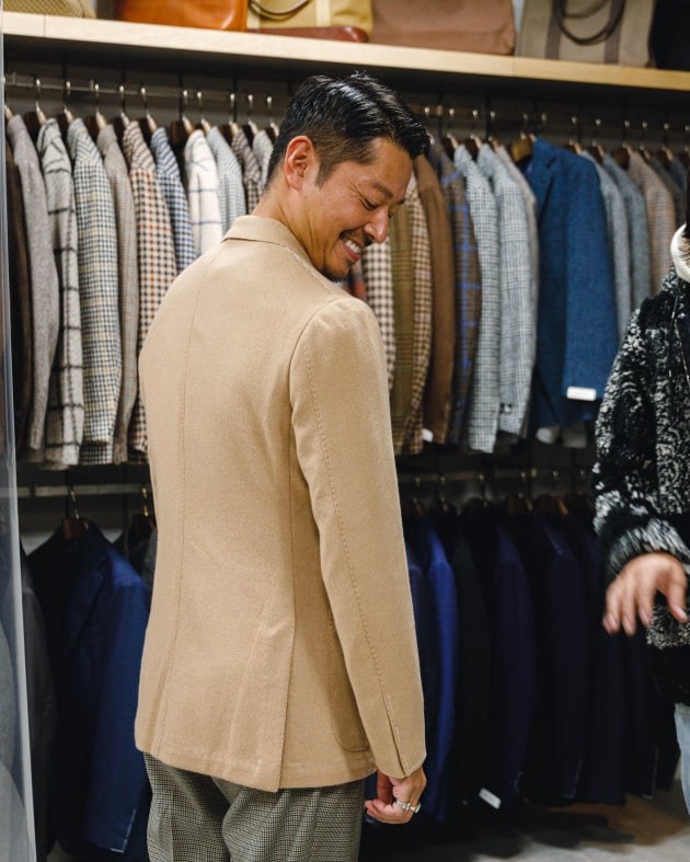 <Brilla per il gusto>では2025年秋冬から展開をスタートしましたが、すでに人気ブランドとして定着し、スタッフからの支持も非常に高いレーベルです。トモさんも愛用しています。今季も見逃せないという顔つきですね。