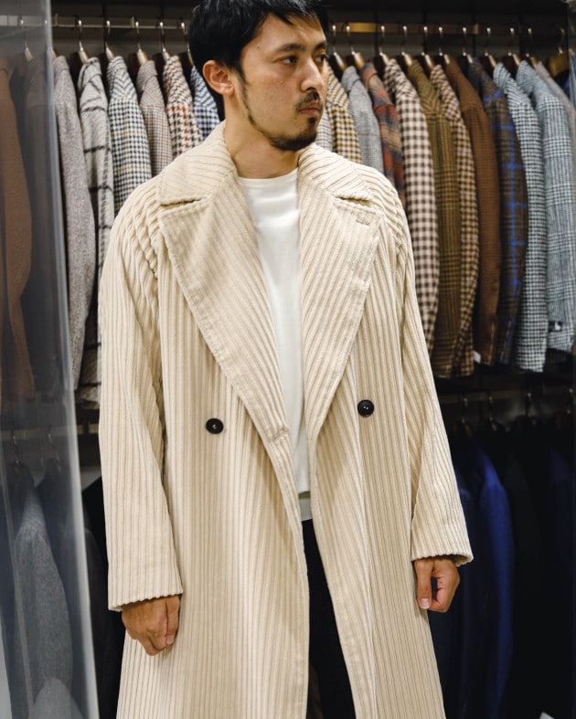 そんな<l’impermeabile(リンペルメアビレ)>からは別注のバルカラーコートをご用意。