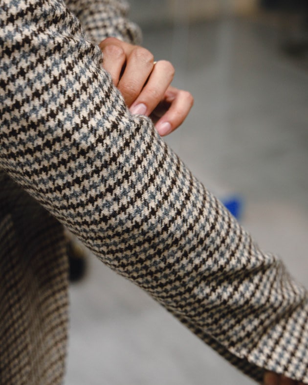インラインをベースに、着丈を3cm長くし大人らしい縦のラインを強調。肘のエルボーパッチは取り除き、腰ポケットはフラップをボタン留めに変更しています。クラシックさを損なわず、より洗練された表情に仕上げています。