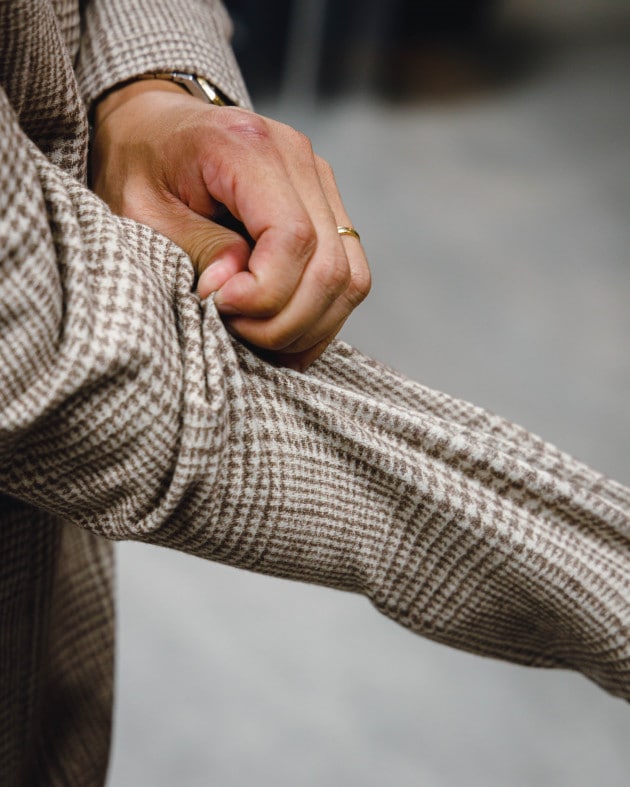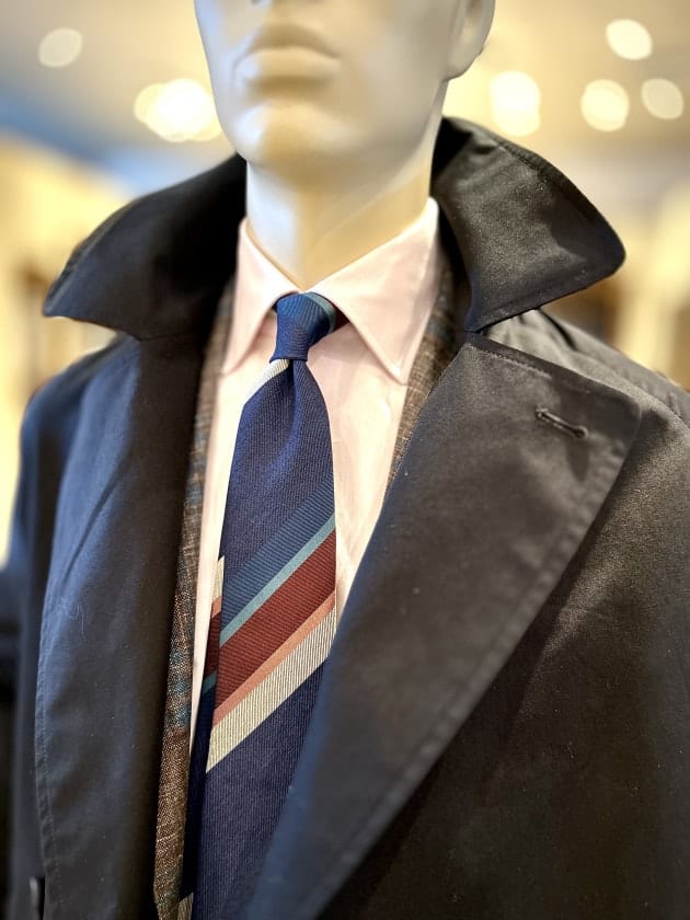 店頭に並ぶコートがシックなダークトーンに偏りがちなここ数年、<Brilla per il gusto>としてぜひ提案したかったのが、ディレクター小林が入社したての頃に流行っていたような明るいカラーのコートをやりたいということで企画されております。