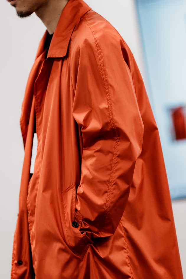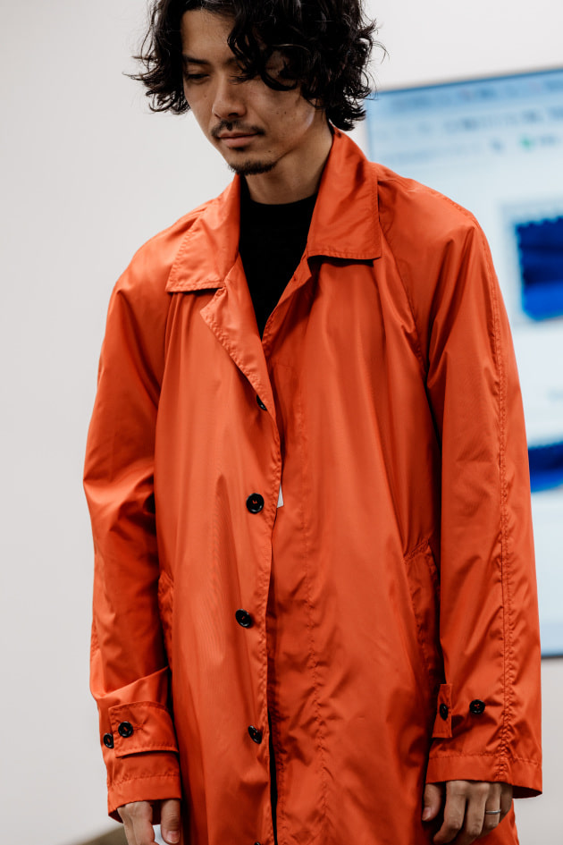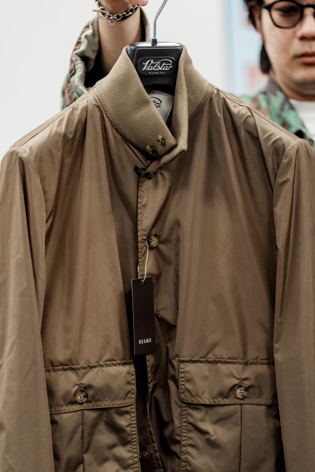 20年前に<International Gallery BEAMS>で展開していた、社長の設楽が所有している<THE NORTH FACE PURPLE LABEL>のブルーのカラーナイロンコートを参考に、サイズ感を現代的なゆったりとしたバランスにアップデートしています。