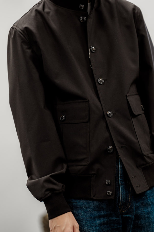 こちらはブラウンのトロピカルウール素材を載せたシックなドライビングブルゾン。
