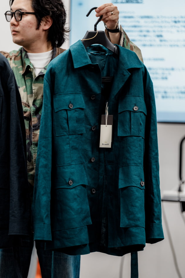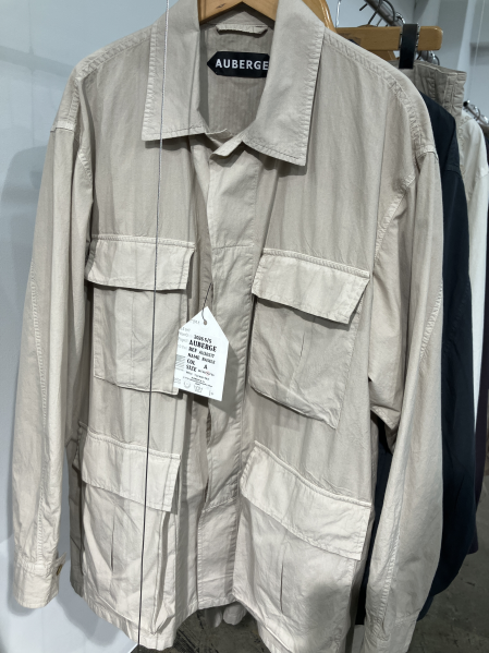 まだラインナップの情報は入力されておりませんが、高橋の話によるとUSエアフォースのサファリジャケットをオマージュしたモデルが、ベージュ〜オフホワイトのような明るいトーンと、ネイビー系の 2 色展開を予定しているとか。