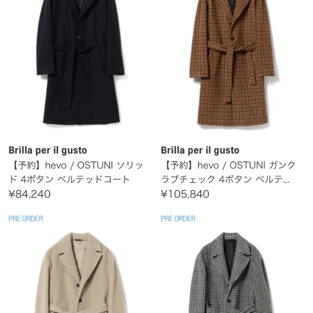 春夏なのでコートのラインナップは少なめに。ということで<hevo>らしいモデルとして人気のセミダブルコート<SURBO>を1着だけピックアップしています。