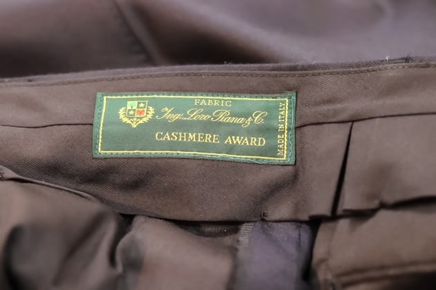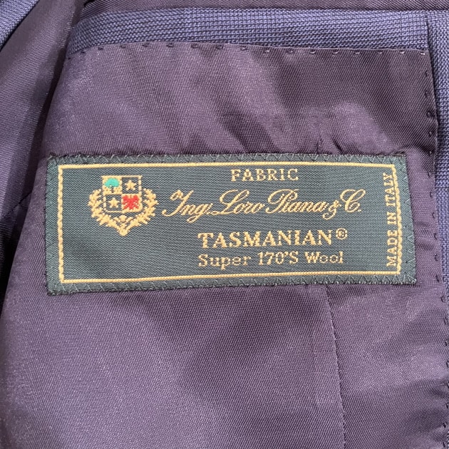 初めにご紹介するのは<LORO PIANA / ロロ ピアーナ>の「TASMANIAN SUPER 170’S / タスマニアン スーパー 170’S」です。この服地はロロ ピアーナの高級服地の中でも代表的な服地でオーストラリアのタスマニア島で飼育されたメリノウールの中でも15マイクロンといわれるカシミアと同じくらいの細番手で縦糸緯糸共に2本の糸を撚り合わせた双糸で織り上げられた上品な光沢感を持った服地です。元々は「プリースト クロス」という「聖職者向けの服地」をロロ ピアーナが作成しており、それをスーツ向けに転用させたのがこのタスマニアンスーパー170’Sです。250グラムという軽い服地ですが、一年を通して着ていただける最高品質の服地です。