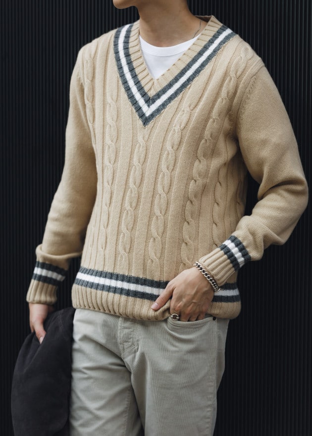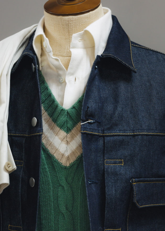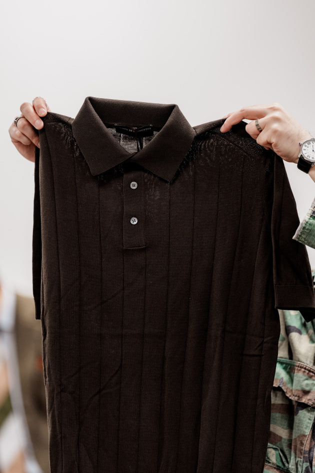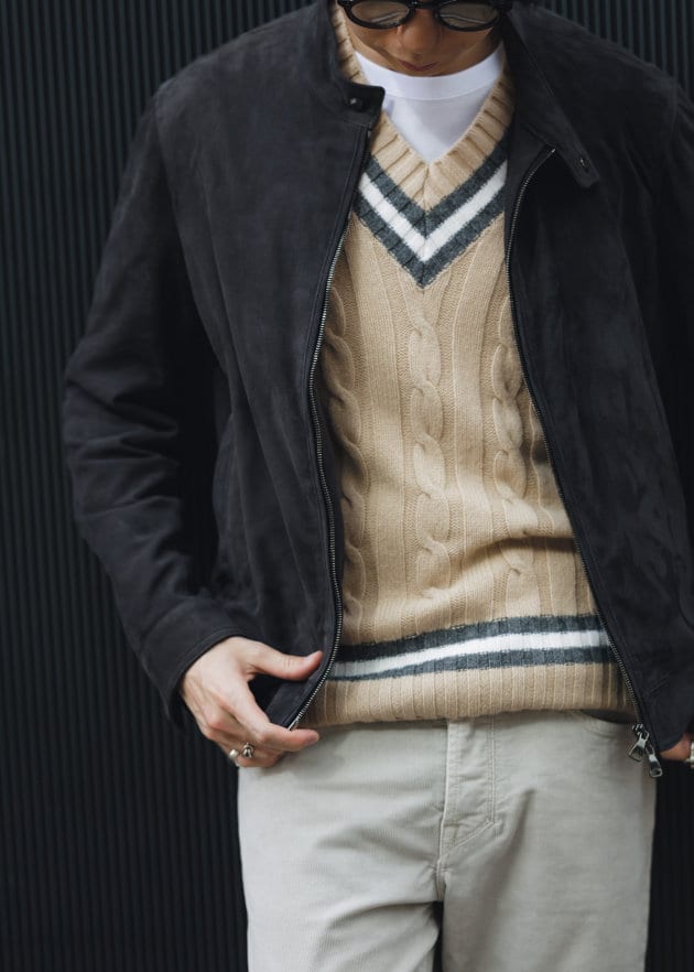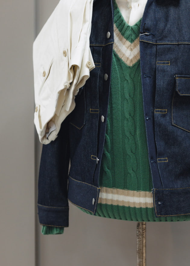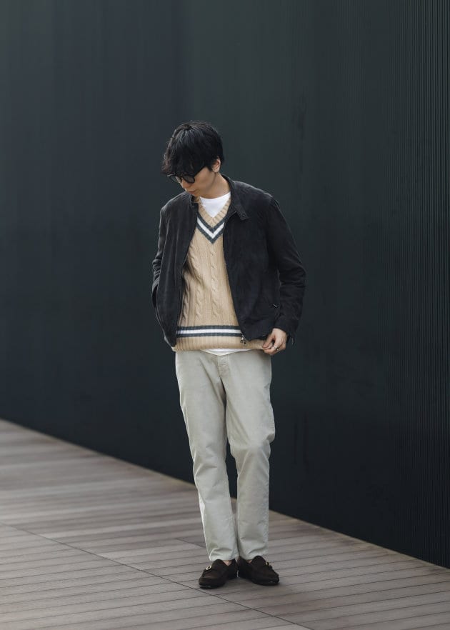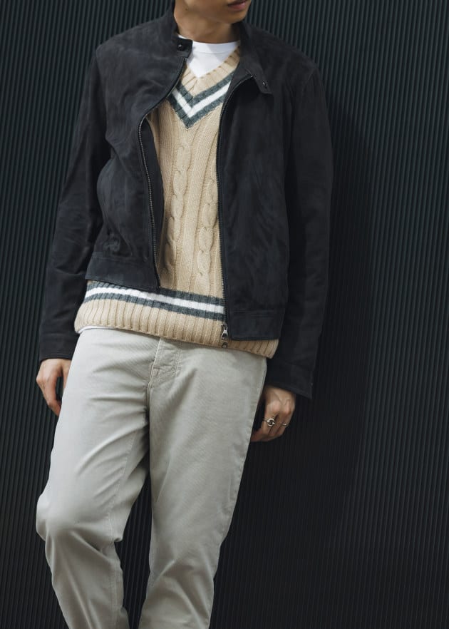 シンプルなニットポロだからこそ、襟の表情で差をつけるというわけですね。