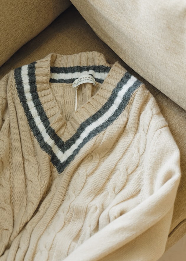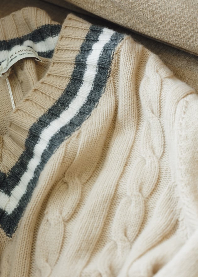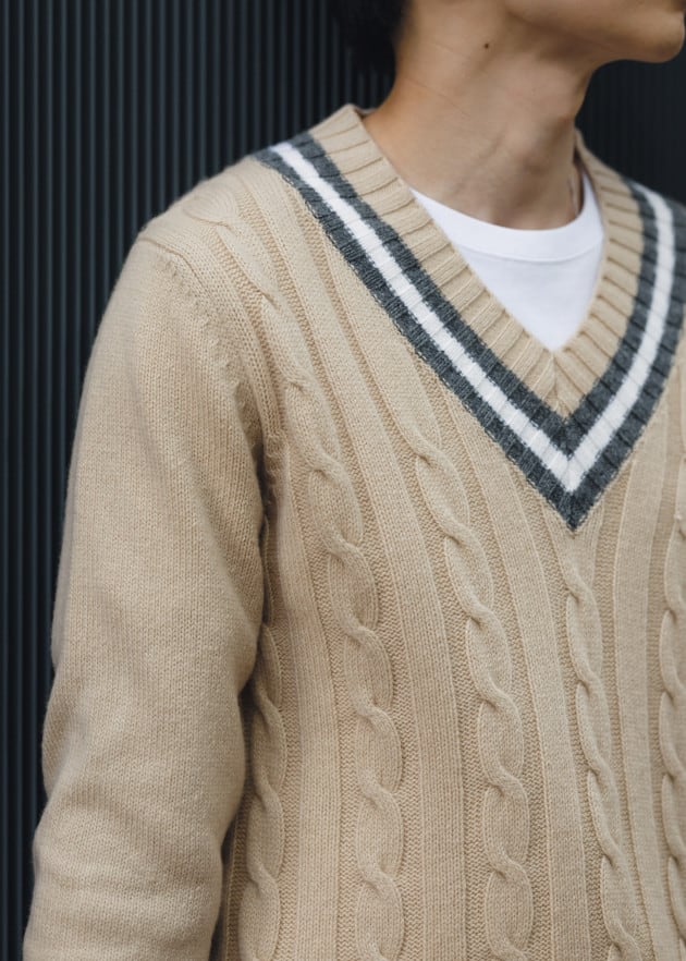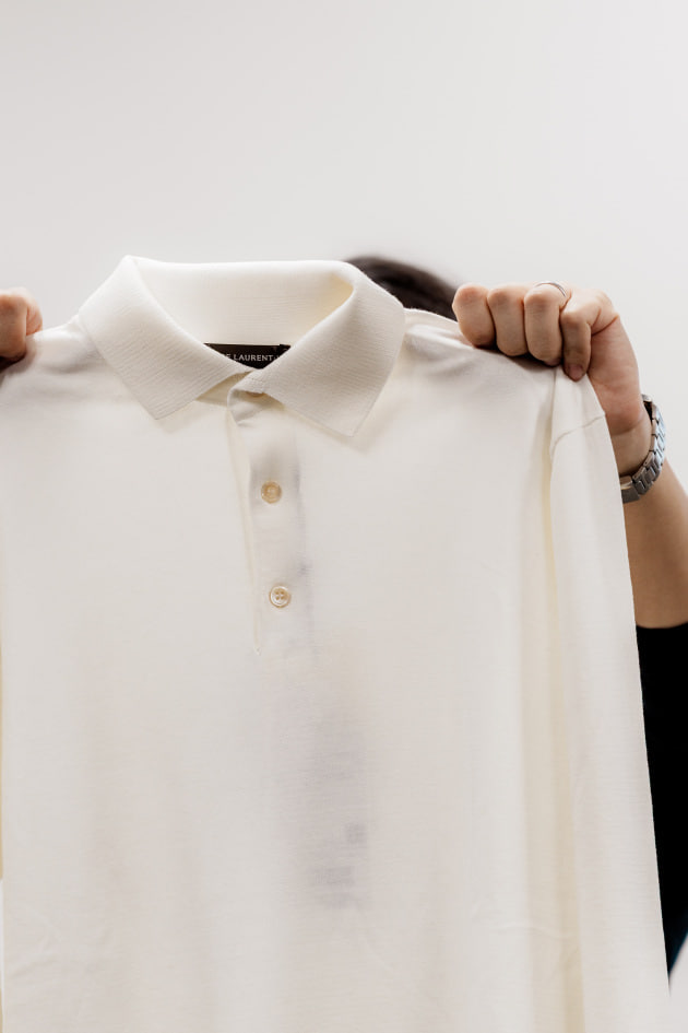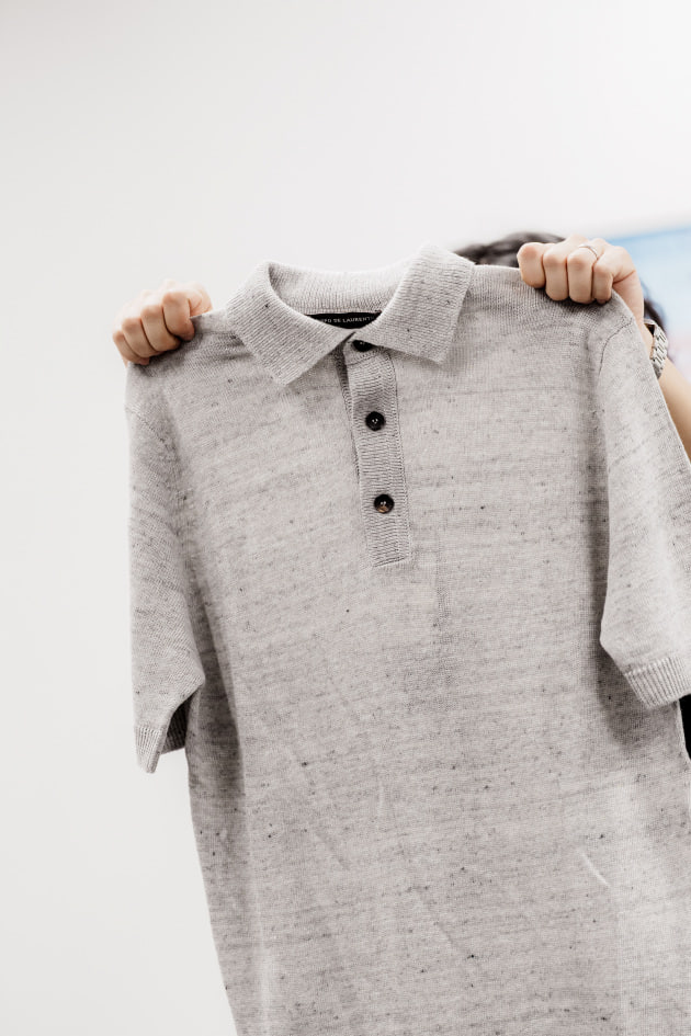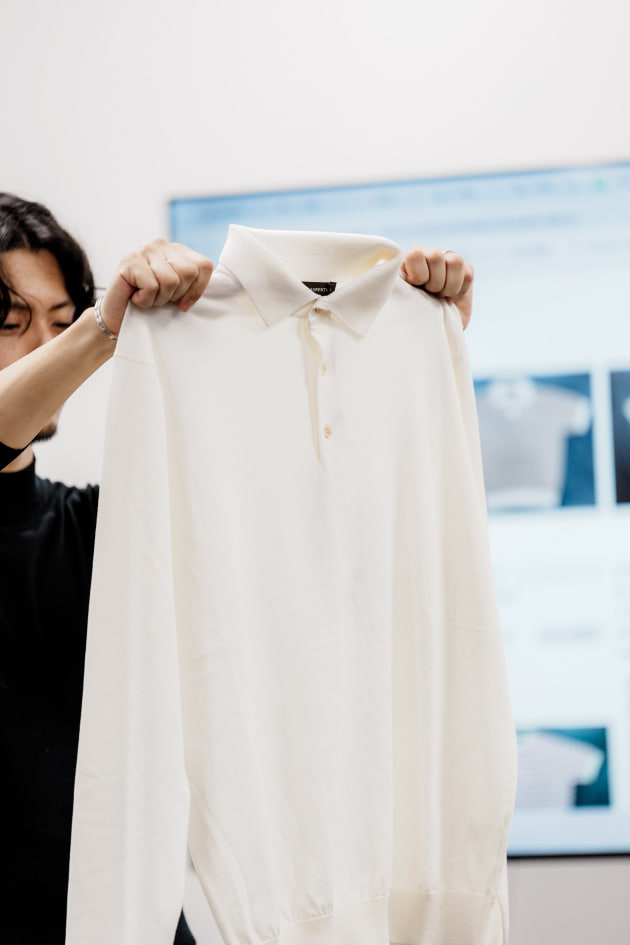 こういうニットポロって、なぜかブラックとかブラウンとか、濃い色ばかりで展開していて、こういうホワイトカラーって珍しいなと思いました。